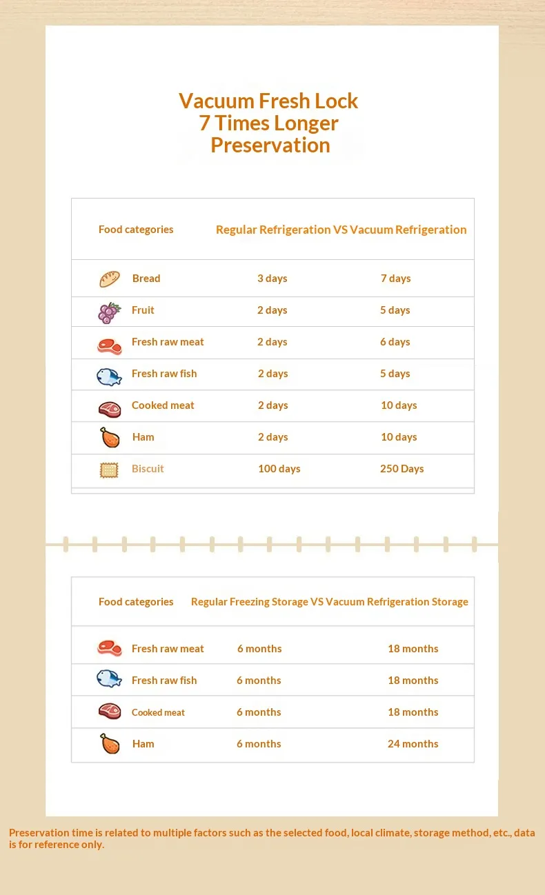 Longer Freshness: Helps extend food shelf life.