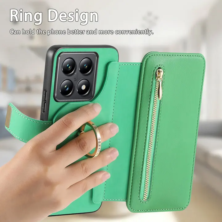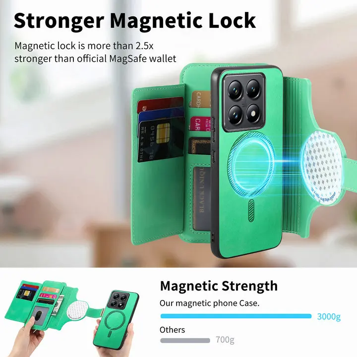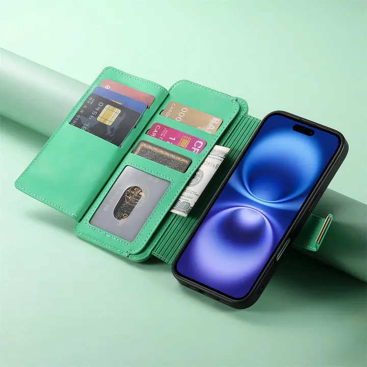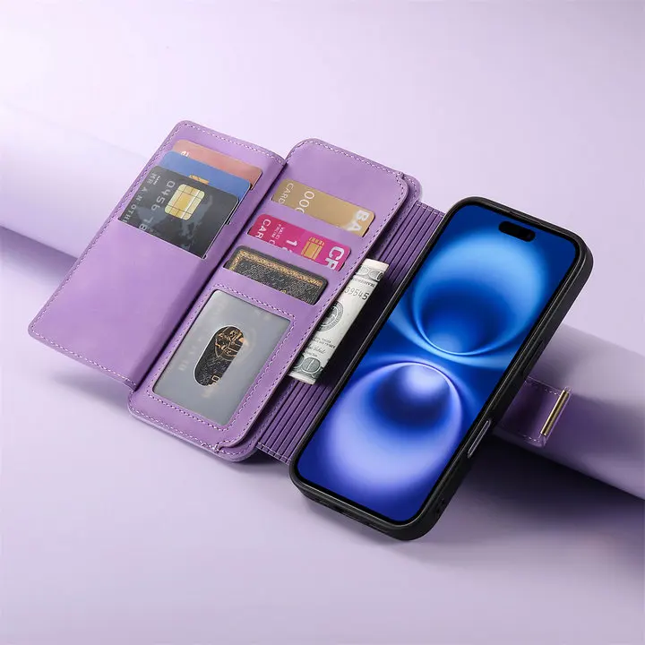 Feature 1: Magnetic 2 in 1 detachable leather zipper wallet shell