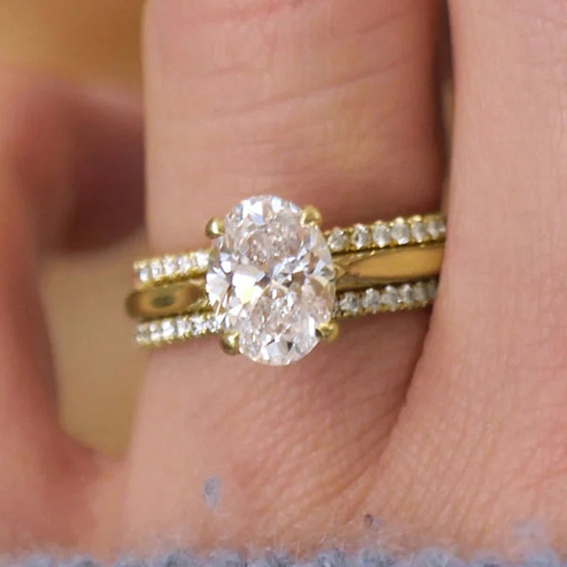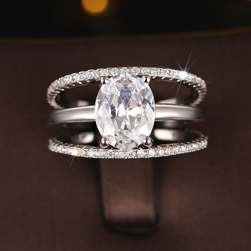 Four-claw Inlaid Ring Three Ring Set Oval Female