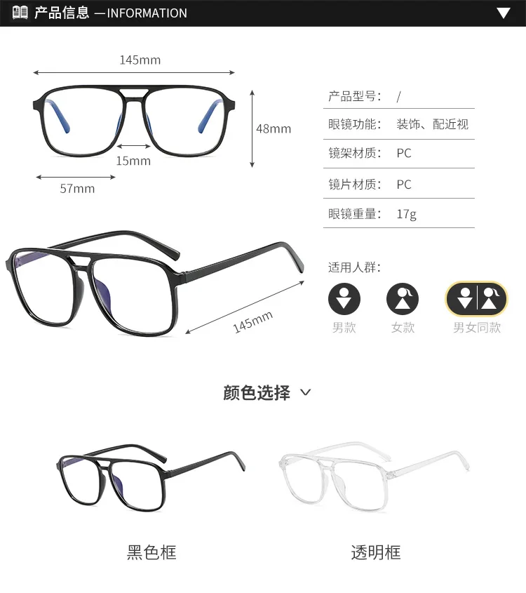 Frame Color: black - High-quality Unisex Plain glasses women men glasses lens square glasses male female Plain glasses