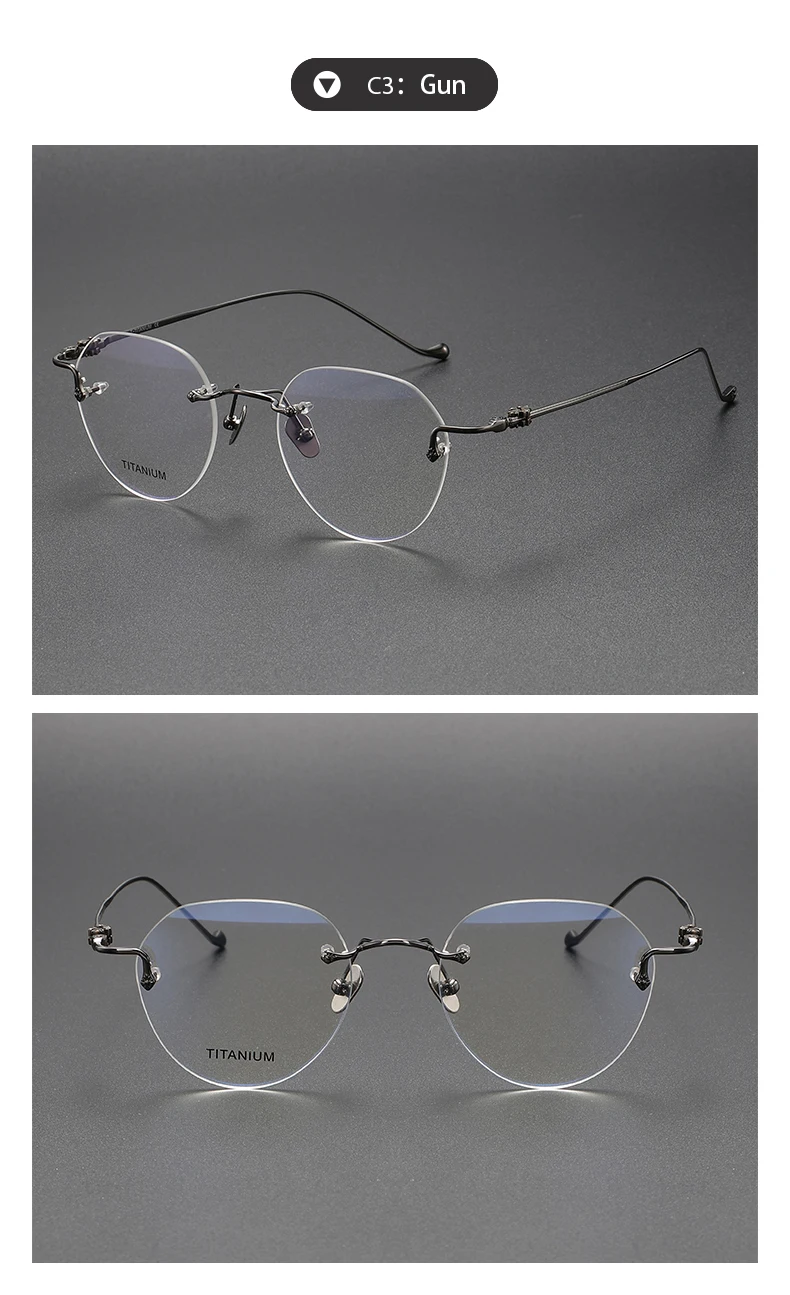 Frame Color: WHITE, Eye Prescription: +300 - BLMUSA Pure Titanium Rimless Anti-blue Light Reading Glasses for Men Round Photochromic Optical Prescription with MR-8 lens