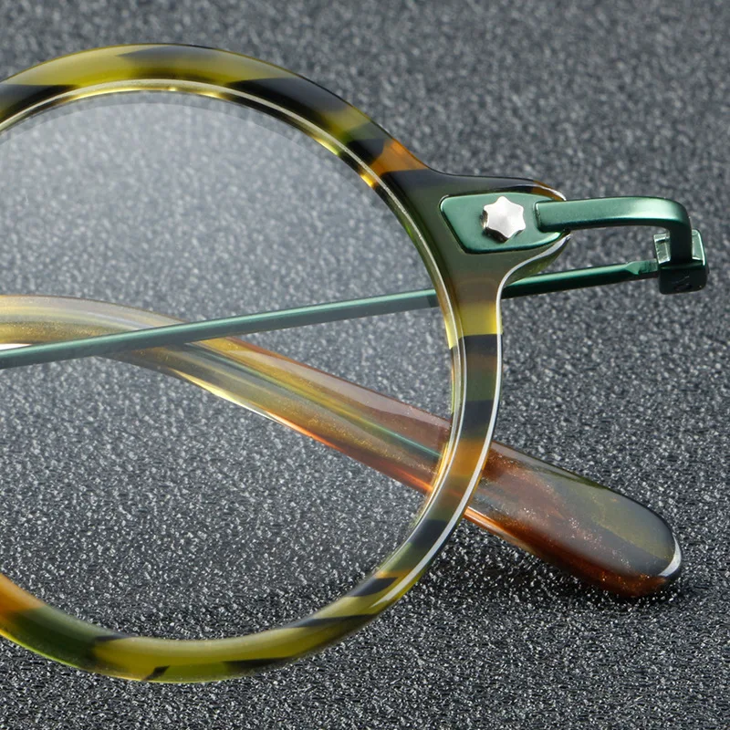 Frame Color: WHITE, Eye Prescription: +550 - VCKA Anti-blue Discolor Acetate+Titanium Myopia Glasses Frames Small Round Men Prescription Optical Women Eyewear -0.50 to -10.0