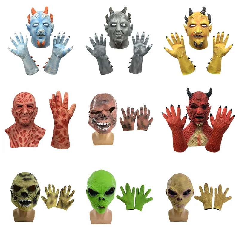 Headgear, Goblin Headgear, Green Ghostface Headgear + Gloves, Long Tongue Headgear, Yellow Skull Headgear + Gloves, Red Devil Claw Headgear,