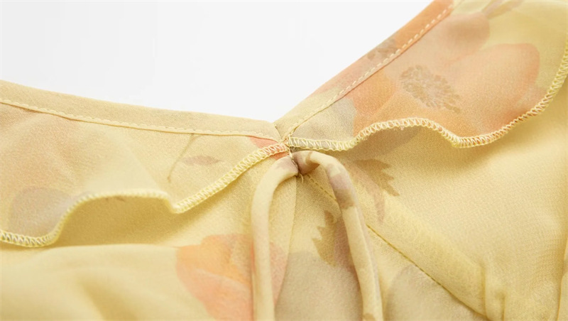 French Printing Slip Dress Women's Deep V-neck Ruffled Chest Lace-up