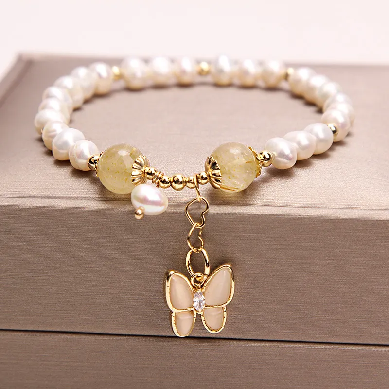 This bracelet is more than just an accessory—it's a celebration of natural beauty and elegant design. The combination of pearls, quartz, and the butterfly charm creates a piece that is both classic and unique, making it a must-have for any jewelry lover. Whether you wear it on its own for a minimalist look or stack it with other bracelets for a more layered effect, it adds a touch of sophistication and femininity to your style.