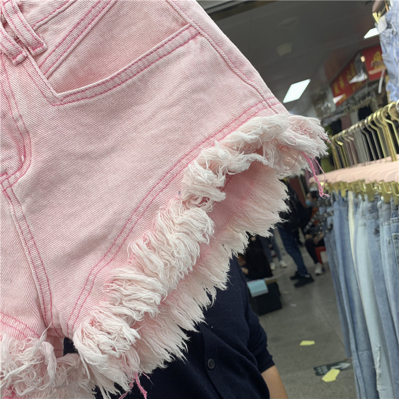 Fringed Frayed Denim Shorts Women Summer Thin High-waisted Wide-leg Pants
