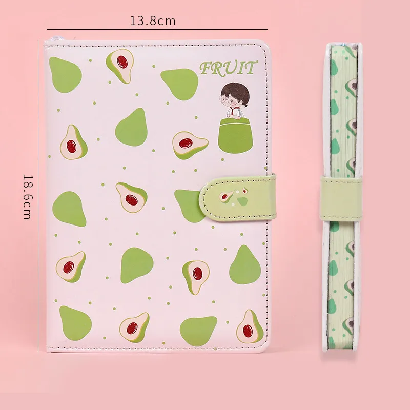 The Fruit Print Notebook Planner is more than just a planner—it's a stylish companion that helps you stay organized while adding a bit of fun to your routine. The magnetic buckle and durable PU leather cover ensure that your planner stays protected, while the vibrant fruit design adds a colorful, refreshing touch to your stationery collection. Perfect for anyone who loves cute, functional stationery, this planner combines practicality with personality.
