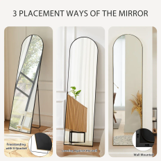 High-definition reflection and shatterproof: Constructed with premium quality float glass, this wall mirror offers crystal-clear reflection and increased longevity. Additionally, the floor mirror features a shatterproof design on the rear to prevent any breakage and ensure safety.Length × Width × Height 14.57 × 55.51 × 0.55 inch Length × Width × Height (Package) 58.34 × 16.22 × 1.18 inch Weight 10.36 lb Package Weight 13.11 lb Item No. ZHUMI-MI-GZ-1556-BK Specification Black-Arch - Convenient installation options: The standing mirror set includes screws and anchors for easy wall mounting. Alternatively, you have the flexibility to simply lean it against the wall or place it freestanding on the floor without any hassle.