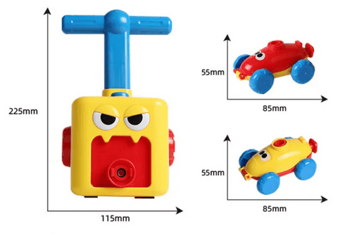 This toy consists of four components: Pump, Cars, Balloons and Extras (depending on package selection). The balloon is attached to the car and then connected to the pump. By using the lever, the balloon is inflated. Finally, the button on the pump is pressed, releasing a small amount of air from the balloon. This causes the car to move forward. The child learns here Isaac's Newton third rule of motion: for every action there is an equivalent opposite reaction. The air is pushed out of the back of the car while the car moves forward! Physics has never been so simple.