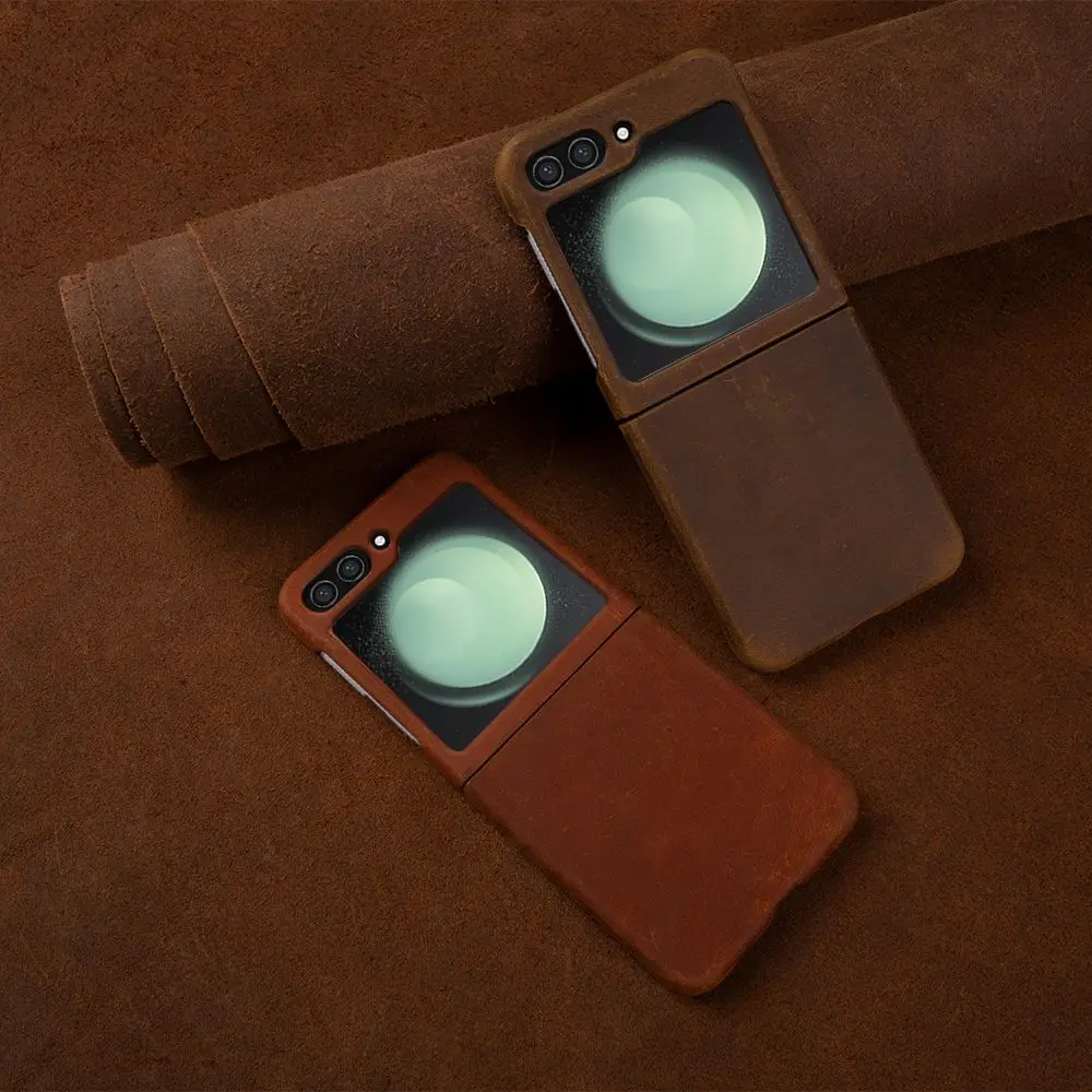 Funda de piel auténtica hecha a mano para Samsung Galaxy Z Flip Series