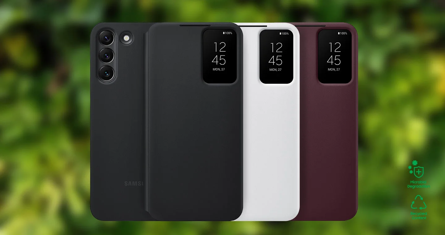 Tratada con un revestimiento antimicrobiano, la funda S-View Flip Cover protege contra el crecimiento microbiano para mantenerla limpia. *El exterior de la funda S-View Flip Cover para el Galaxy S22+ cumple con los requisitos de actividad antimicrobiana establecidos por el Instituto de Pruebas e Investigación FITI. *Para cumplir con su función antimicrobiana, este producto ha sido tratado con el biocida piritionato de zinc. *La propiedad antimicrobiana no protege completamente a los usuarios contra bacterias ni contra virus, incluido el Covid-19. *El efecto antimicrobiano puede variar según las condiciones de uso. *El revestimiento antimicrobiano solo está en el exterior de la funda.
