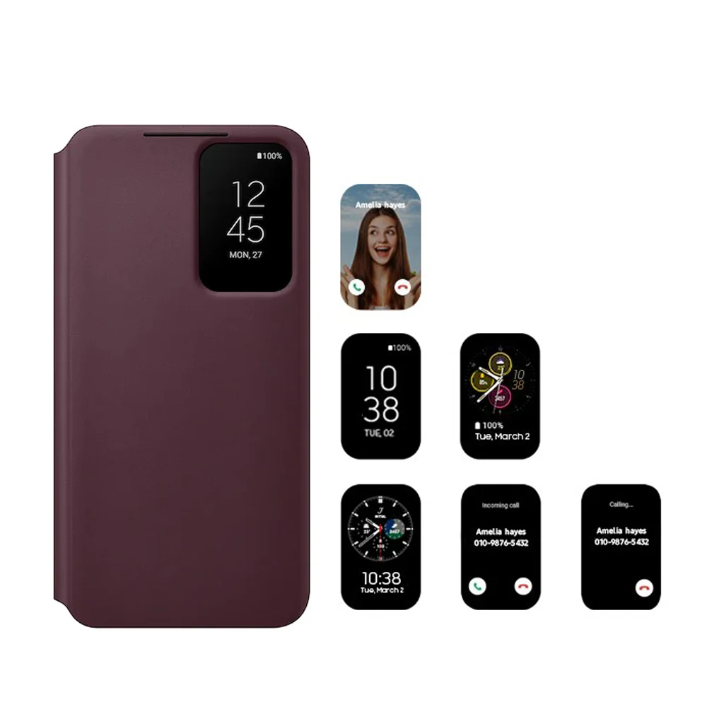 Con la cubierta abatible en la parte frontal y el estuche en la parte posterior, la cubierta abatible S-View envuelve tu teléfono para protegerlo. Incluso se ajusta perfectamente para asegurar las partes externas, como la cámara y los botones.