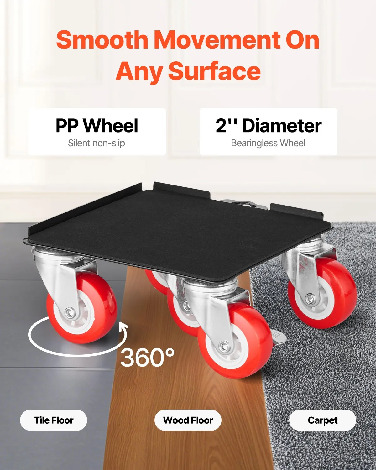 - Smooth and Easy Mobility: The dolly is designed to roll smoothly on various surfaces, including hardwood, tile, and carpet, making it ideal for both home and commercial use.
