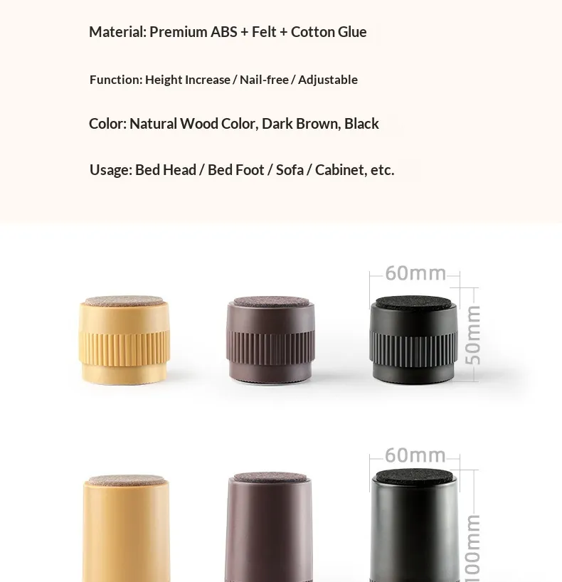 - Versatile Design: These risers are suitable for a wide variety of furniture pieces, including beds, sofas, tables, and desks, and come in different sizes to fit your needs.