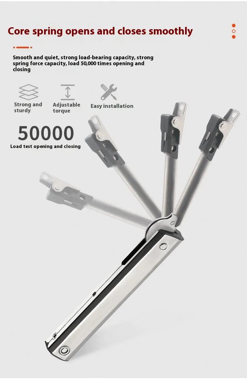 Fabricada en acero laminado en frío, esta barra de soporte ofrece una resistencia, durabilidad y resistencia al desgaste superiores. Su diseño robusto garantiza un rendimiento fiable durante un uso prolongado. 2. Mecanismo de soporte de resorte