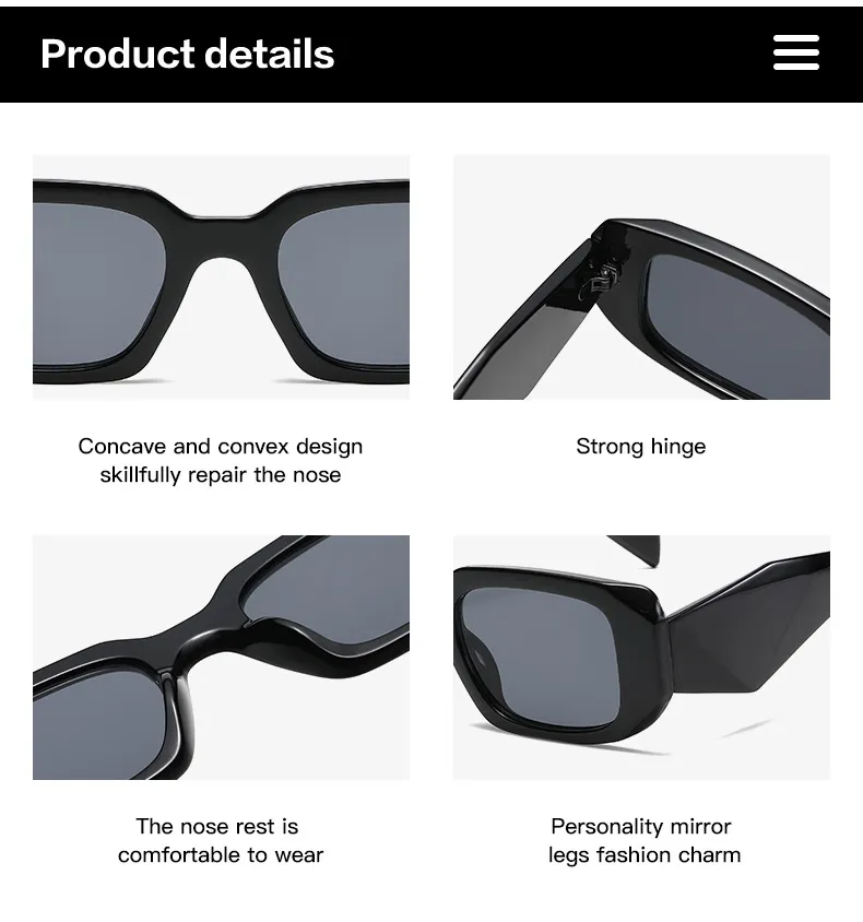 Destaca con un toque geométrico único en la clásica montura cuadrada. Los ángulos irregulares y los bordes atrevidos añaden un toque de individualidad a tu atuendo, lo que convierte a estas gafas de sol en el accesorio perfecto para las mujeres a la moda.