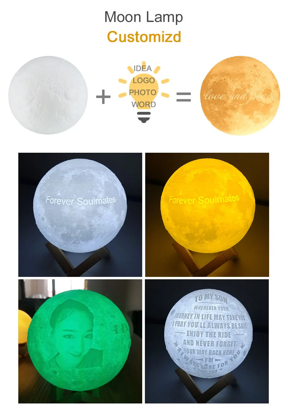 2.The moonlight uses 3D printing technology, and the surface of the moon lamp is very close to the real moon. novelty and charming, amazing.