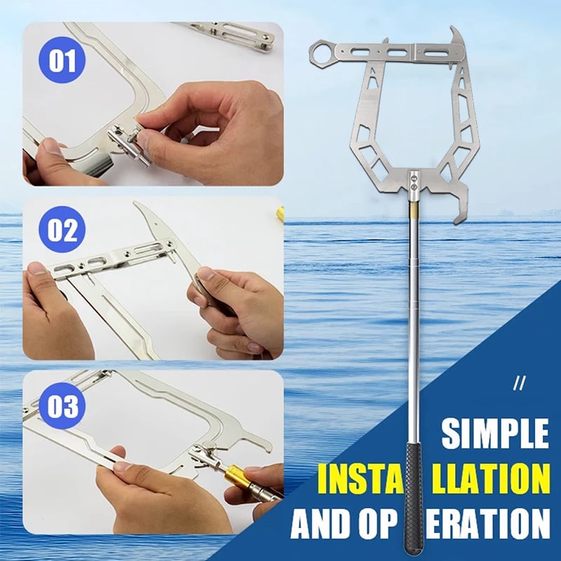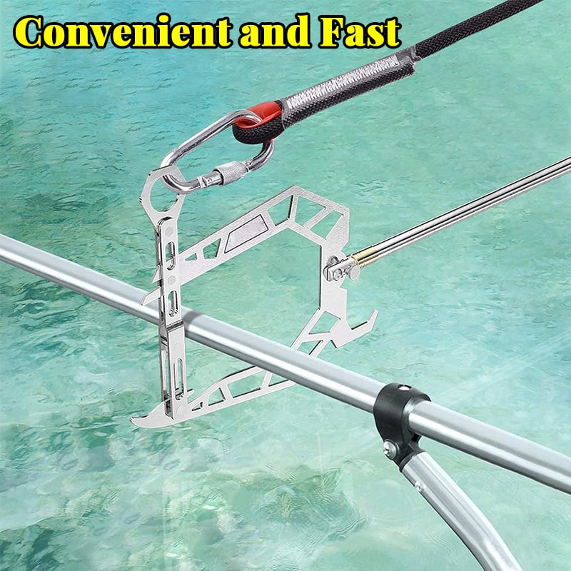 MATERIALES DE ALTA CALIDAD: Ofrece un agarre cómodo y fiable, fabricado en acero inoxidable 304 y aleación de aluminio, no se rompe ni se dobla fácilmente y soporta la humedad del océano. El enhebrador de muelles para cuerdas de amarre se prueba estrictamente, la calidad es confiable