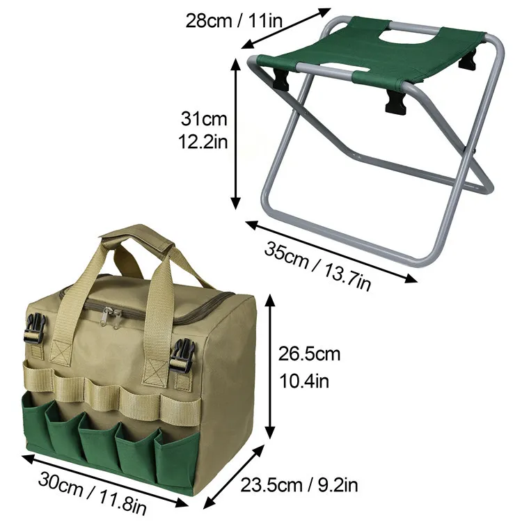 Constructed with durability in mind, the gardening stool and tote bag are suitable for outdoor conditions. The materials are designed to handle regular use in gardens, patios, and lawns. The stable frame helps maintain balance on different surfaces, while the tote bag securely holds tools without sagging or shifting.