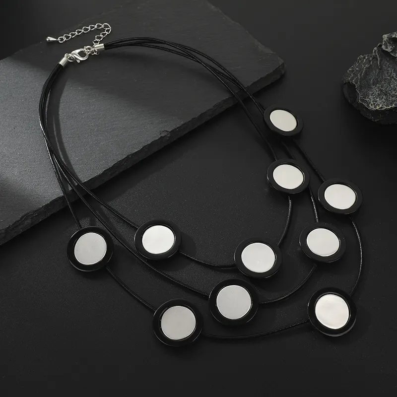 El collar de aleación geométrico redondo gargantilla es la combinación perfecta de estilo moderno, versatilidad y elegancia. Su diseño geométrico, su aleación de alta calidad y su ajuste regulable lo convierten en un accesorio imprescindible para cualquier mujer que valore la joyería elegante y minimalista. Ya sea que te vistas para una salida informal, un evento de negocios o una ocasión especial, este collar realza tu estilo con su diseño atemporal. Invierte hoy en el collar de aleación geométrica redonda Gargantilla y experimenta la combinación perfecta de moda y funcionalidad. Información del producto: Proceso de tratamiento: Galvanoplastia Color: TLN1033 plata Negro Población aplicable: Mujer Estilo de cadena: cuerda de cuero Material: Aleación Forma: Geometría Elementos populares: redondo Lista de empaque: 1 collar Imagen: