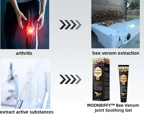 Fácil de usar: Diseñados para la comodidad, nuestras cremas y geles de veneno de abeja son fáciles de aplicar y se absorben rápidamente por la piel para un alivio de acción rápida.