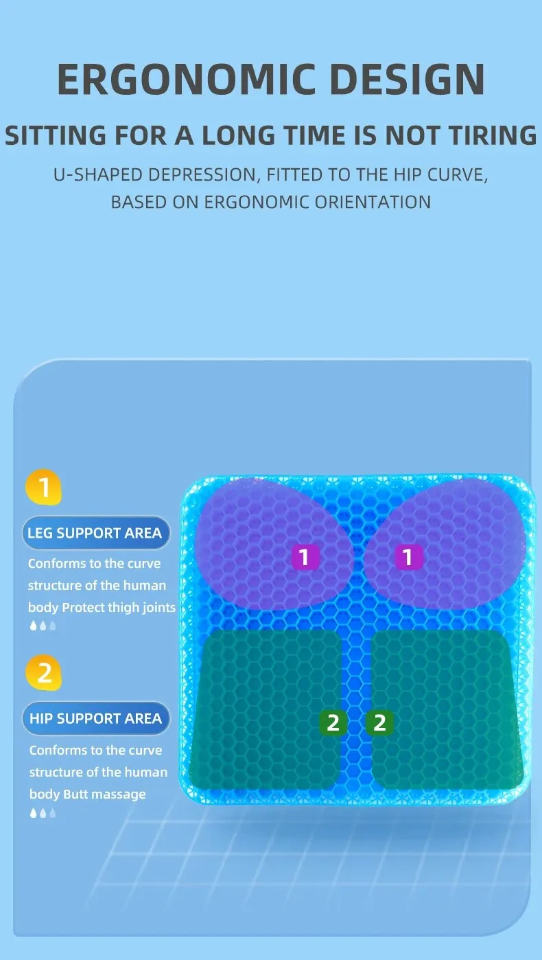 - Durable Gel Material – High-quality gel adapts to your shape while maintaining resilience and support over time.