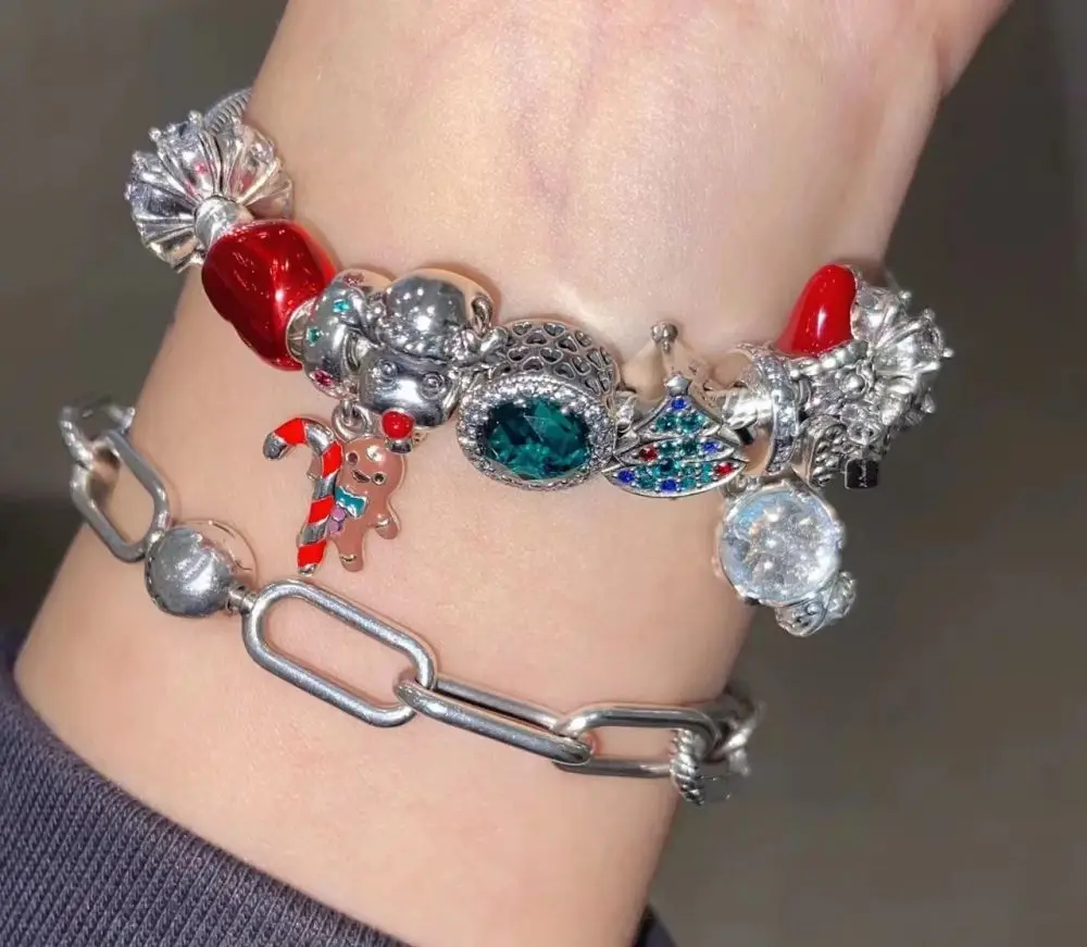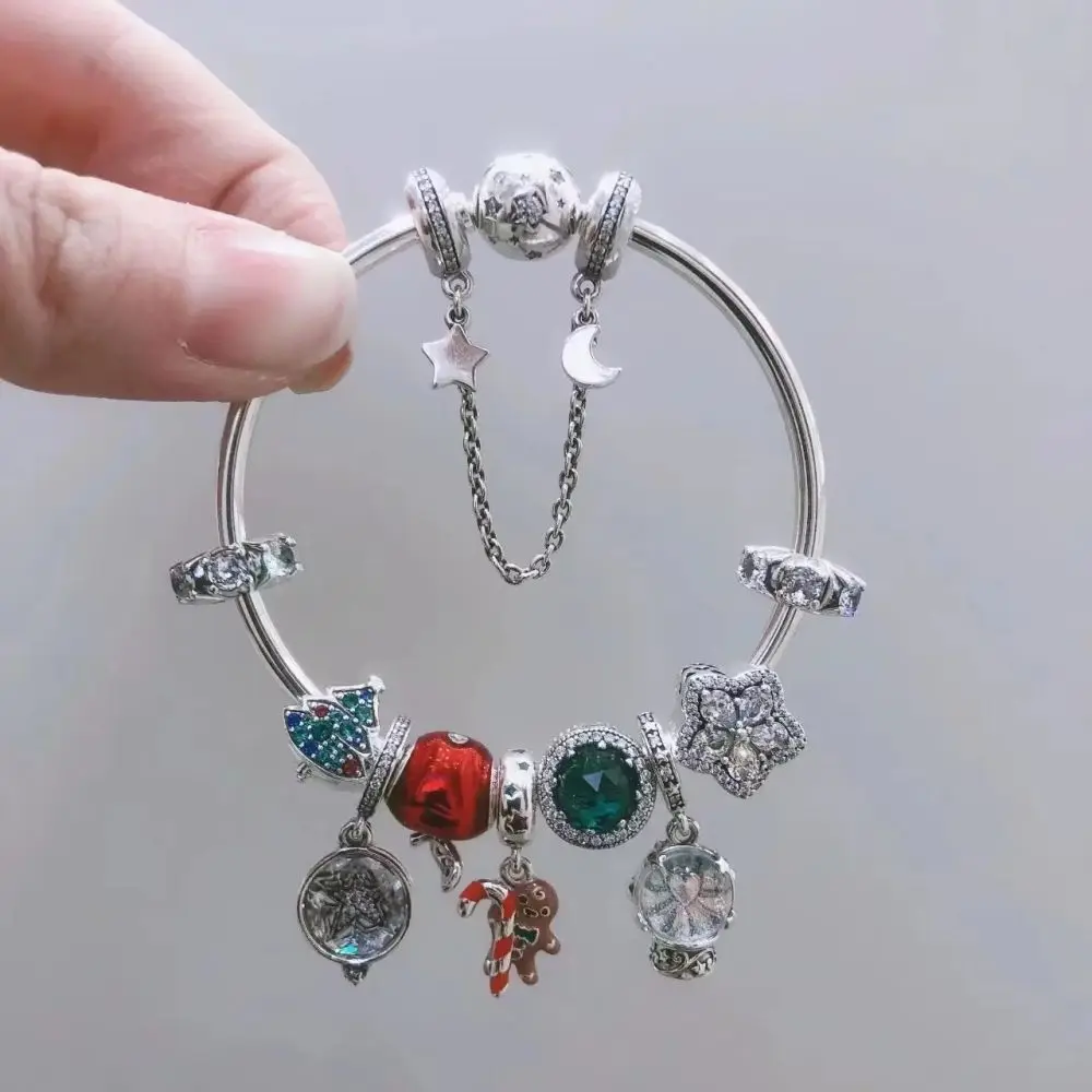 Gem Color: Beige - Pure Silver 925 Christmas Charm Fit DIY Pandora Bracelet Christmas Gift