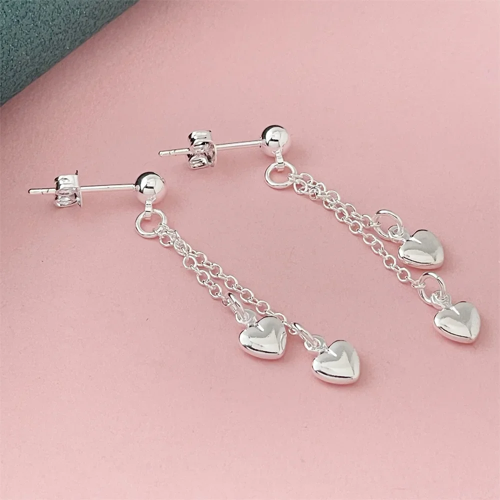 Gem Color: Brown - 925 Silver Heart Shape Earrings Women Exquisite Student Jewelry Accessories