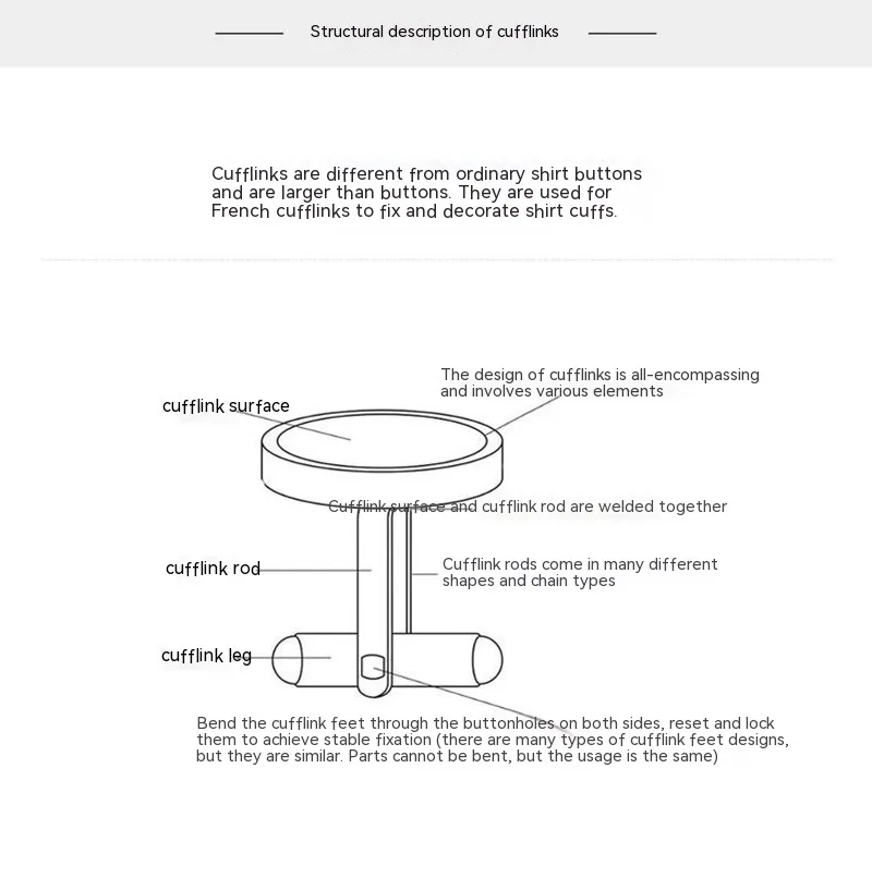 Con su diseño elegante y minimalista, los gemelos de camisa francesa con movimiento mecánico exudan una sofisticación atemporal. La simplicidad de la carcasa de metal pulido y la complejidad mecánica del interior logran el equilibrio perfecto entre el estilo moderno y la elegancia clásica. Son ideales para diversas ocasiones, desde reuniones formales de negocios hasta eventos de lujo, lo que los convierte en un complemento versátil y duradero para cualquier colección de gemelos.