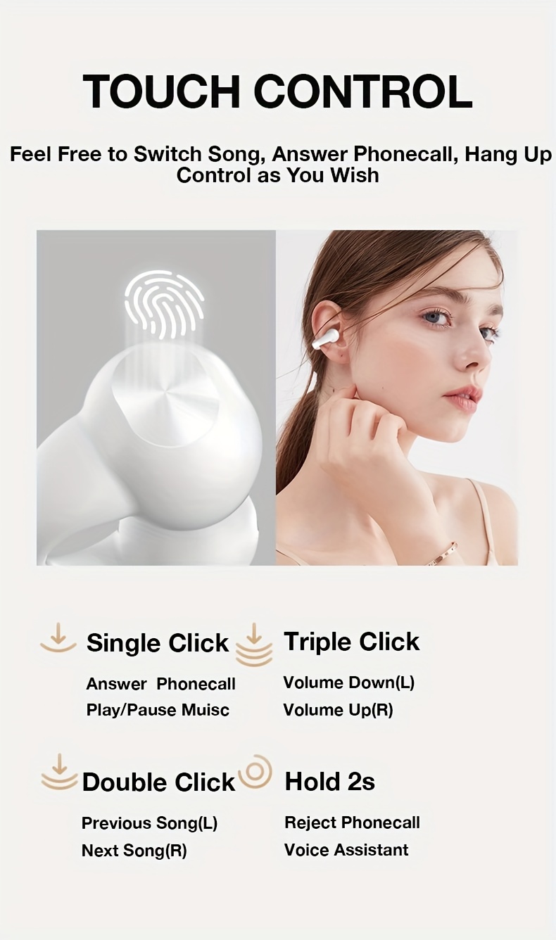 Ideal for those who want wireless convenience, clear voice calls, and hands-free audio control with a sleek, modern design.