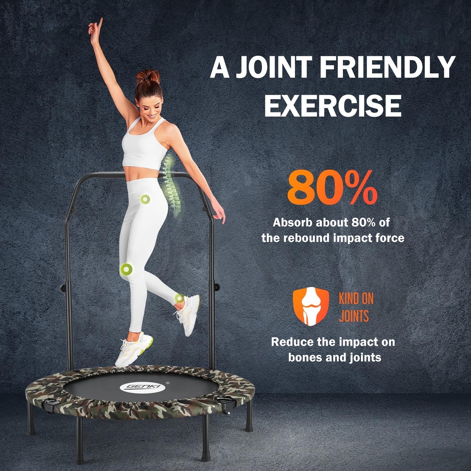 The Genki Trampoline Bounce Rebounder is an excellent choice for anyone looking for a fun and effective way to incorporate cardio into their fitness routine. With its adjustable handrail, spacious frame, and low-impact design, it offers a great way to enhance your fitness without risking joint strain.