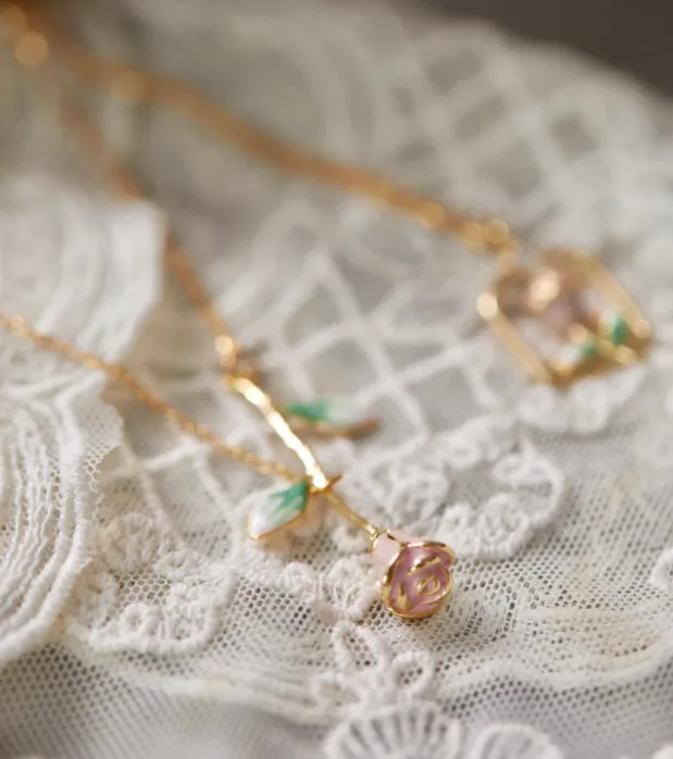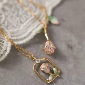 Gentle Rose Enamel Flowers Titanium Steel Necklace