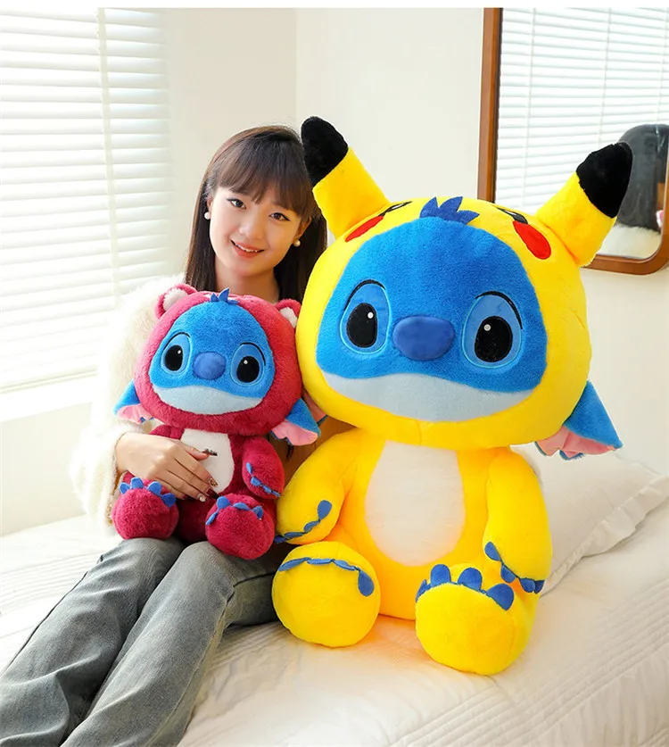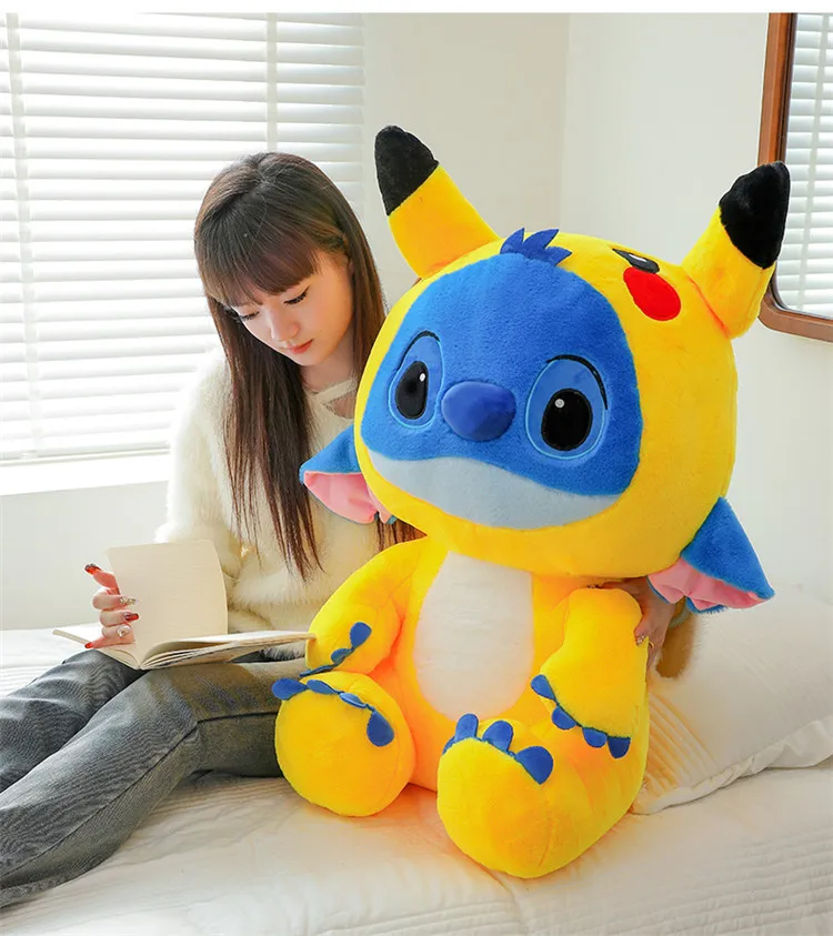 Giant Size Plush Stitch Pikachu Doll – Soft Stuffed Animal Pillow, Strawberry Bear Plush Toys, Perfect Gift for All Ages