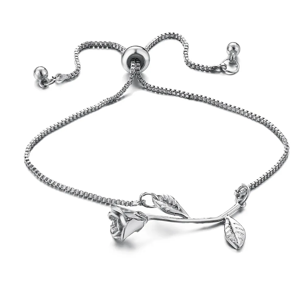 Gift, Fashion Rose Flower Charm Bracelet Ladies Girl Bracelet