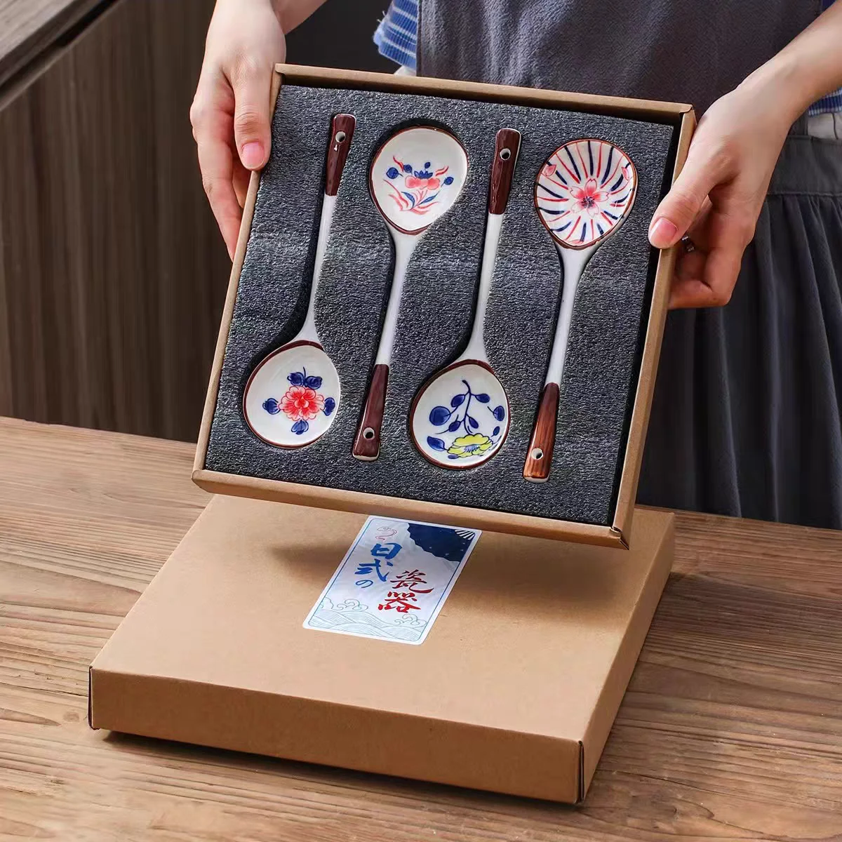 Gift Set Household Ceramic Spoon – Hand-Painted, Eco-Friendly Long-Handled Dessert Spoon