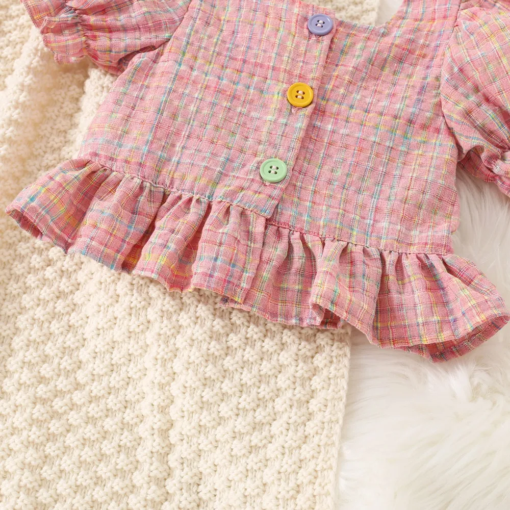 This plaid set is a perfect choice for a variety of occasions. Pair it with sandals for a casual day out or dress it up with cute accessories for a family event. Its versatility makes it a great addition to any wardrobe, offering the flexibility to transition seamlessly from one season to the next. The unique personality of this outfit ensures your little girl will always look her best, whether she's heading to school, enjoying a day with friends, or attending a special event.