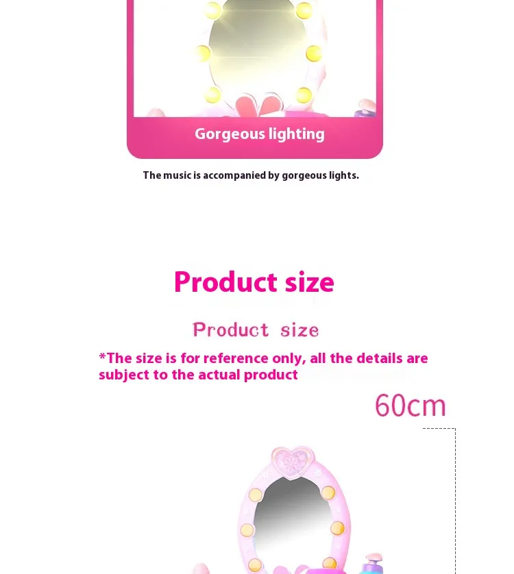 The Girls Playing House Children's Makeup Dressing Table Toys is more than just a fun playset—it’s a tool for developing essential life skills while having fun. From fostering creativity and imagination to improving social skills and motor development, this interactive toy encourages children to explore the world of beauty and self-care in a safe and enjoyable way. Whether they’re playing solo or with friends, this dressing table will provide endless hours of entertainment, making it the perfect addition to any child's toy collection.