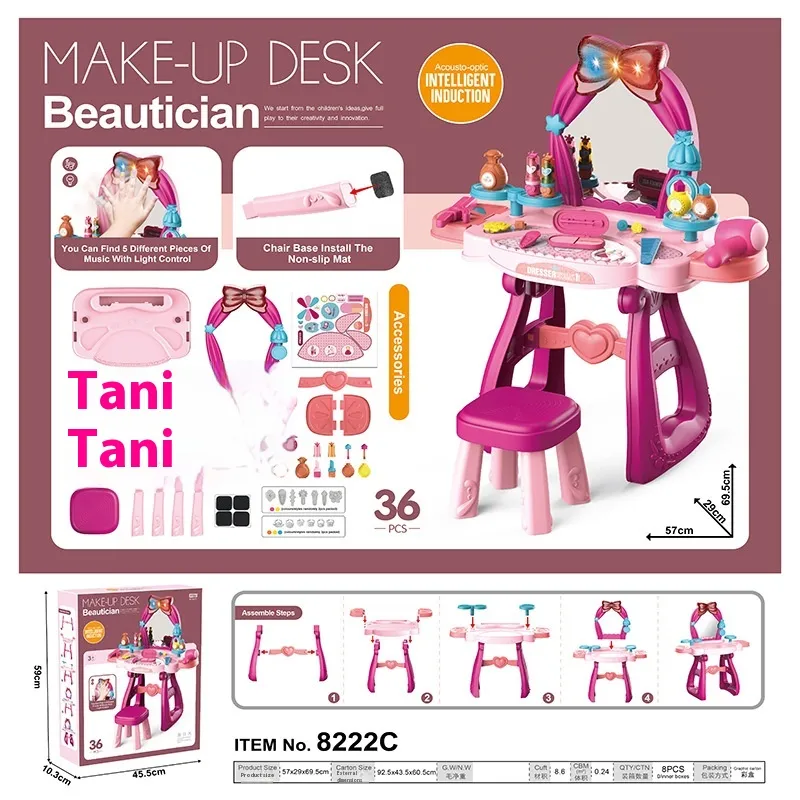 The Girls Playing House Children's Makeup Dressing Table Toys is the perfect playset for young children who love to engage in imaginative role-playing and explore the world of beauty and self-care. Designed to mimic a real-life dressing table, this interactive toy offers a fun and educational experience, encouraging creativity and independent play. With its vibrant design and assortment of makeup accessories, children can pretend to be a makeup artist, fashion stylist, or beauty expert, all while developing essential motor skills, social abilities, and a sense of responsibility. Ideal for girls aged 3 and up, this dressing table playset provides endless hours of fun and learning.