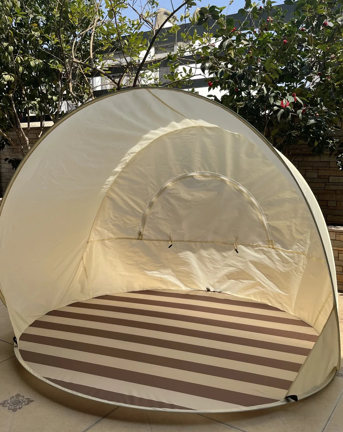 Color: beige stripes tent
