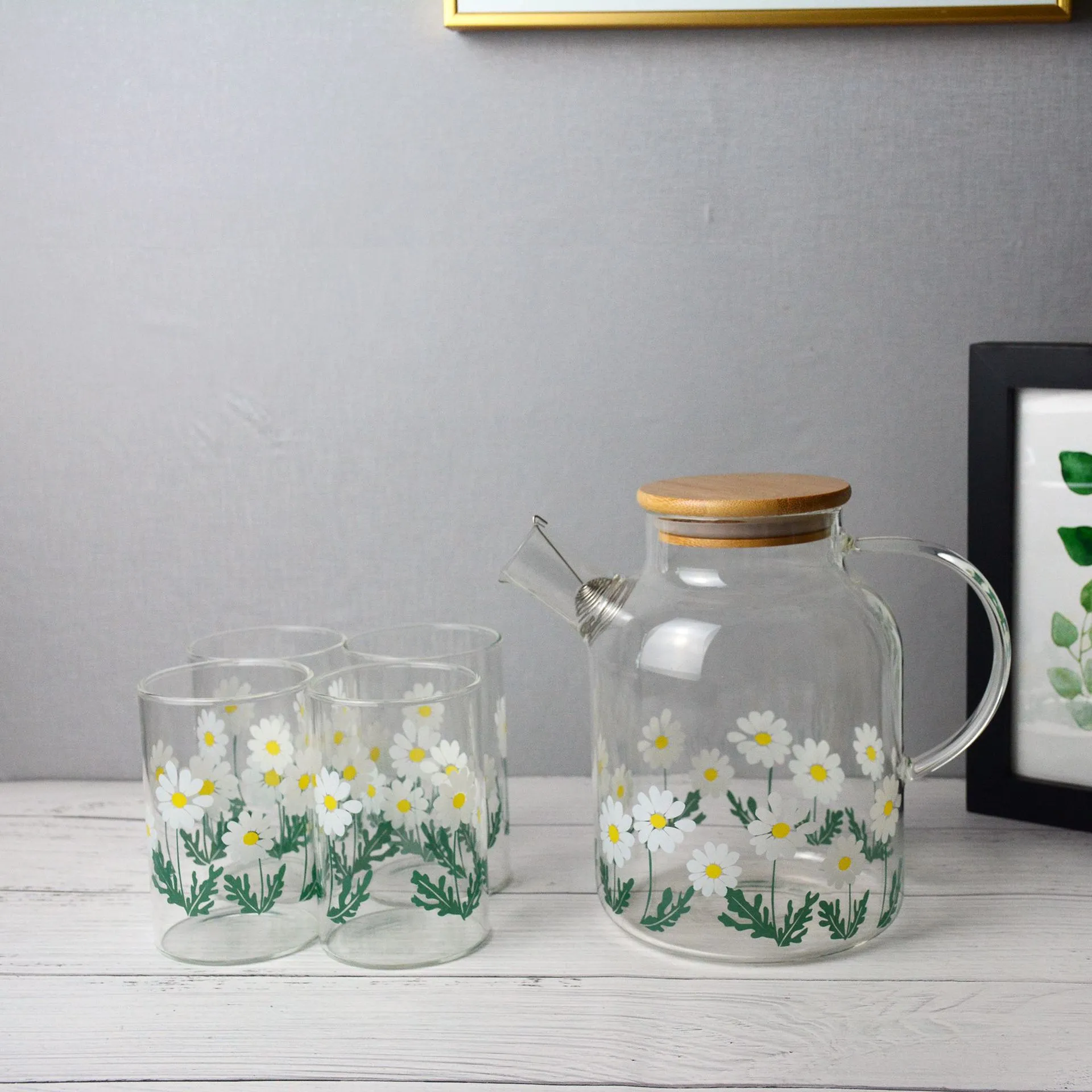 Glass Little Printed Glass Jug Set Summer Cold Water Bottle