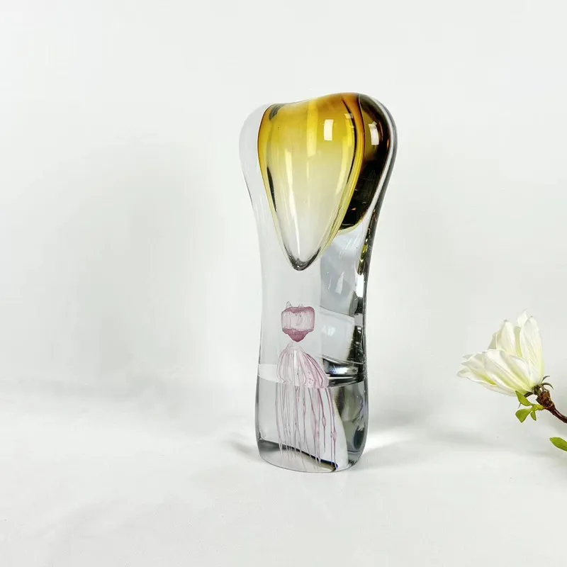The structure of the vase is crafted to balance both form and function. Its shape supports flowers by holding them upright while providing enough space for water and arrangement adjustments. This makes it suitable for a wide range of floral styles, from simple single stems to fuller bouquets.