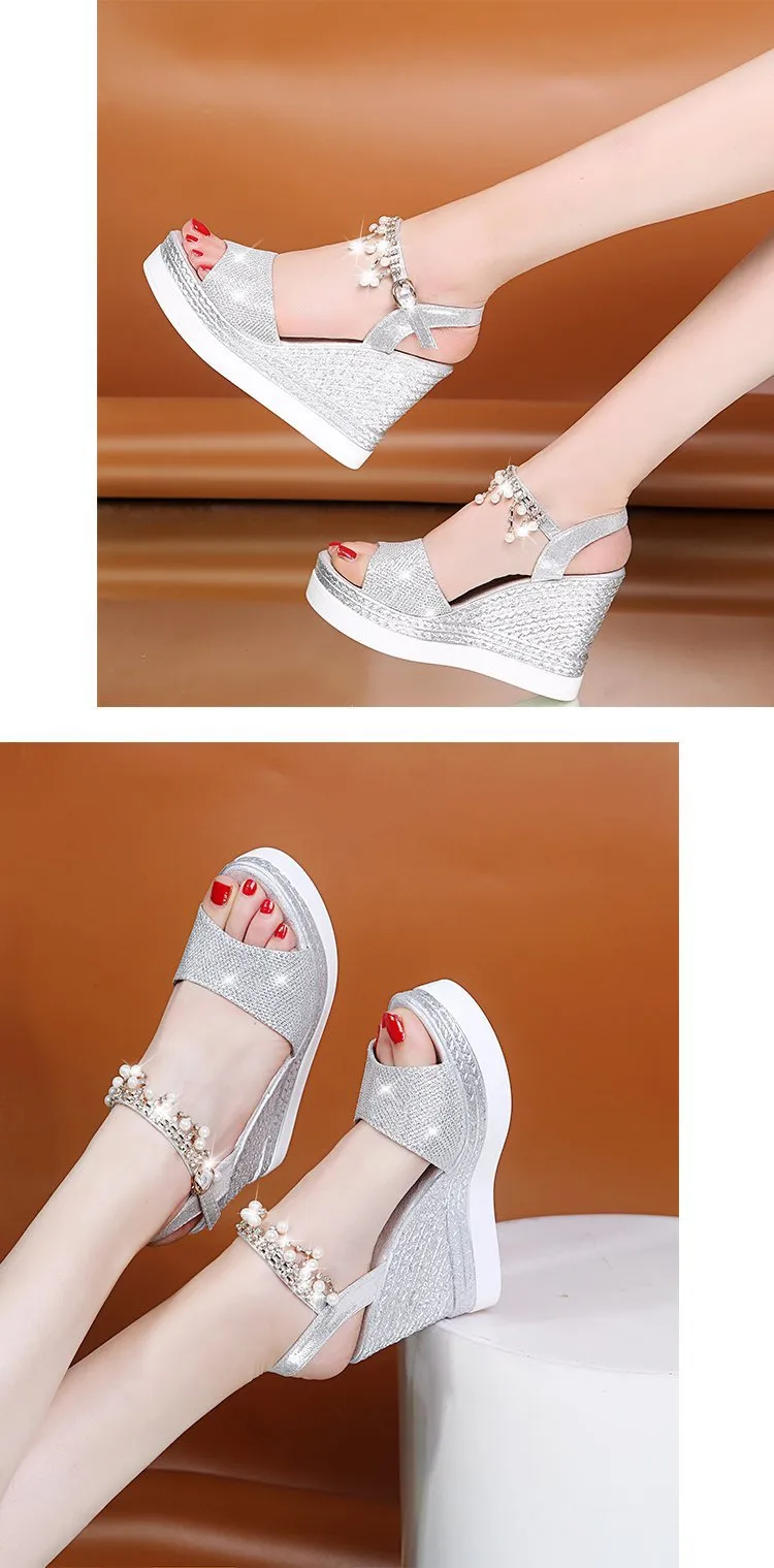Fashion-Forward Footwear: As fashion trends evolve, these glitter platform sandals remain a timeless choice for those who