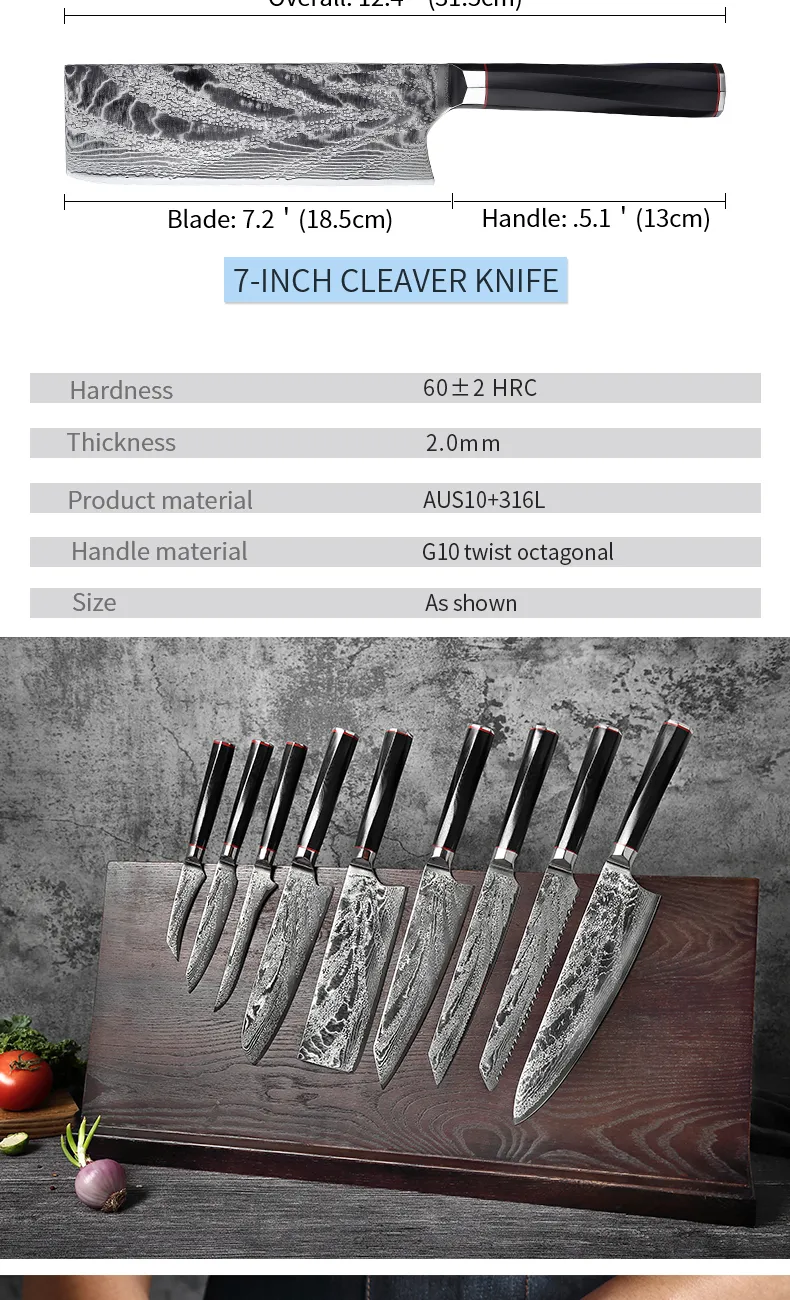Complete Set for All Tasks: The set includes a variety of knives that cover all your kitchen needs, from chopping