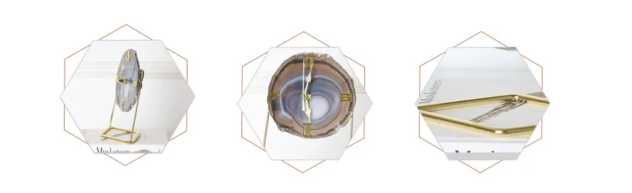 The Golden Agate Stone Clock Decoration is the perfect combination of art, elegance, and functionality. Its stunning golden agate stone design brings a touch of luxury to your living room, model room, or office while serving as a reliable timepiece. Whether as a statement piece for your home decor or a thoughtful gift, this clock adds both beauty and purpose to any space, making it a timeless addition to your collection.