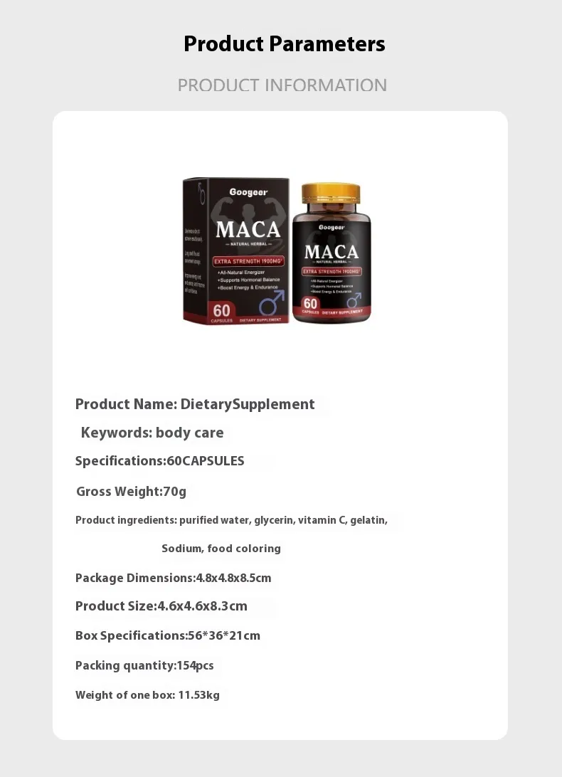 The Googeer Maca supplement provides maca root extract in capsule form, allowing individuals to conveniently incorporate the supplement into their daily routine. Capsules are often preferred because they are easy to consume, portable, and provide consistent serving sizes.