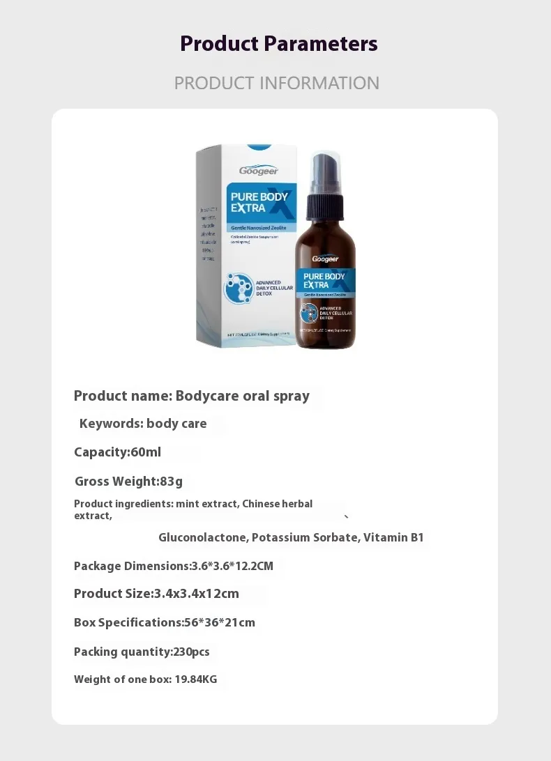 The Googeer PURE BODY EXTRA X is designed for individuals who want to support their body’s natural detoxification process and maintain overall wellness. Ideal for health-conscious people across New Zealand, this convenient oral spray delivers gentle nanosized zeolite designed to support daily cellular detox routines. Whether used as part of a wellness lifestyle or daily health maintenance, Googeer PURE BODY EXTRA X offers a simple and easy-to-use supplement format that fits naturally into everyday routines.