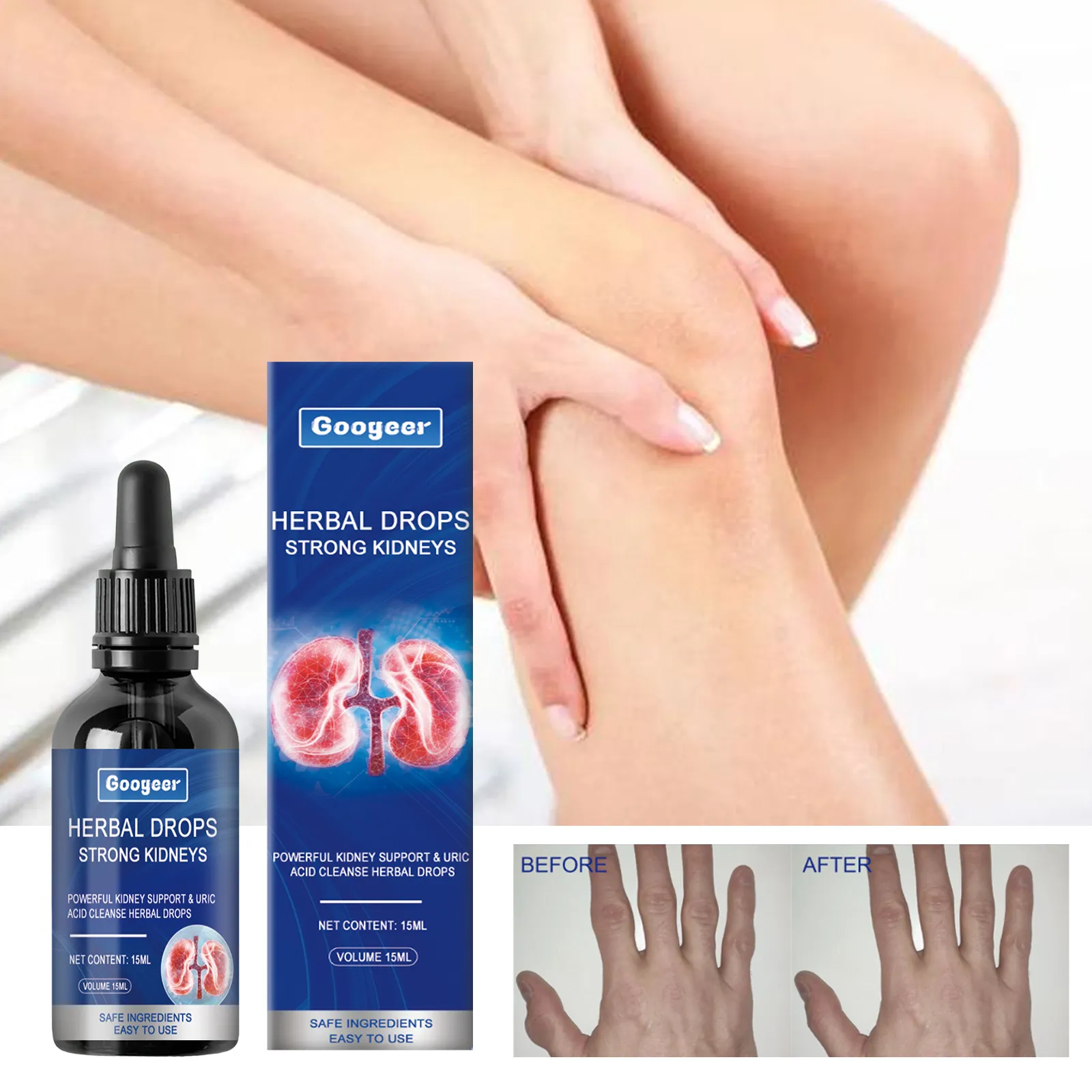 The Gooycer Herbal Drops Strong Kidneys come in a 15ml dropper bottle, providing multiple applications for daily wellness routines.