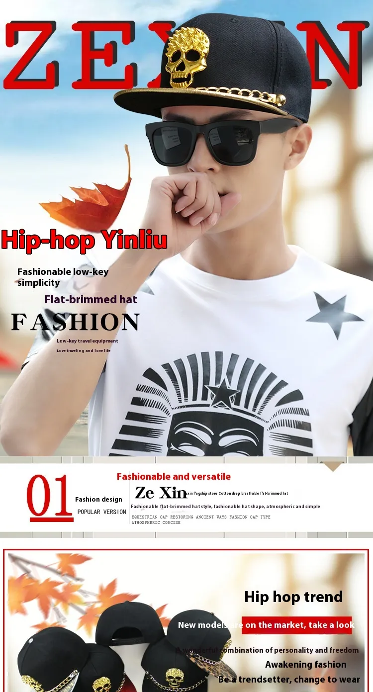 Gorra de béisbol de hip hop con remaches de calavera Gorra de hip hop con visera plana