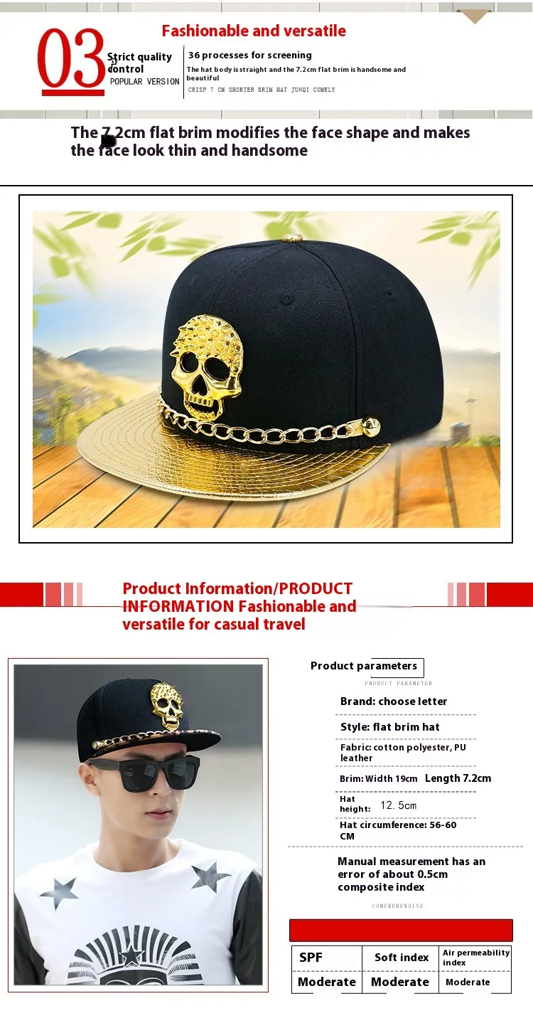 Fabricada con materiales de alta calidad, la gorra de béisbol hip-hop con remaches de calavera está diseñada para brindar comodidad y durabilidad. La tela resistente resiste el uso diario, mientras que los remaches de calavera están firmemente sujetos, lo que le agrega durabilidad a su estilo vanguardista. Ya sea que la uses para un concierto, para salir por la ciudad o simplemente como parte de tu look diario, esta gorra está diseñada para mantenerte cómodo y lucir fresco.