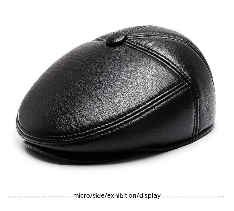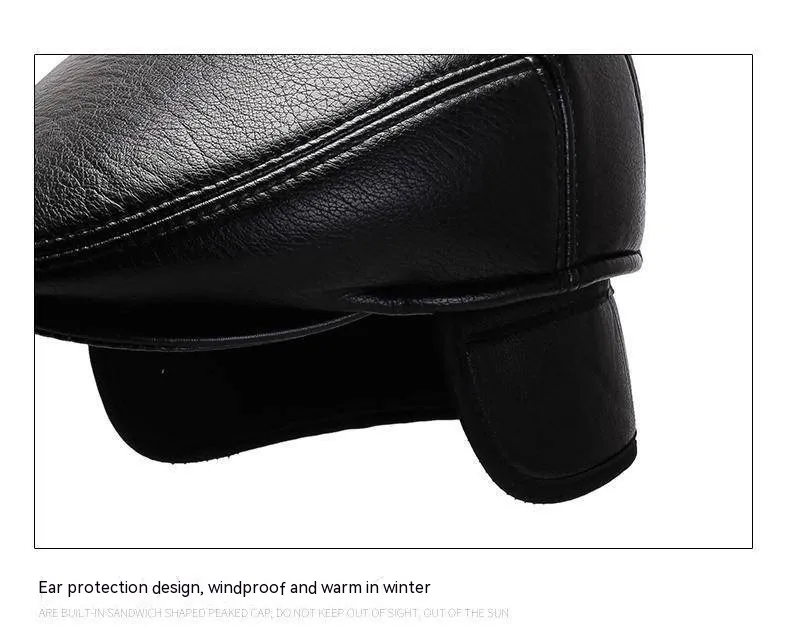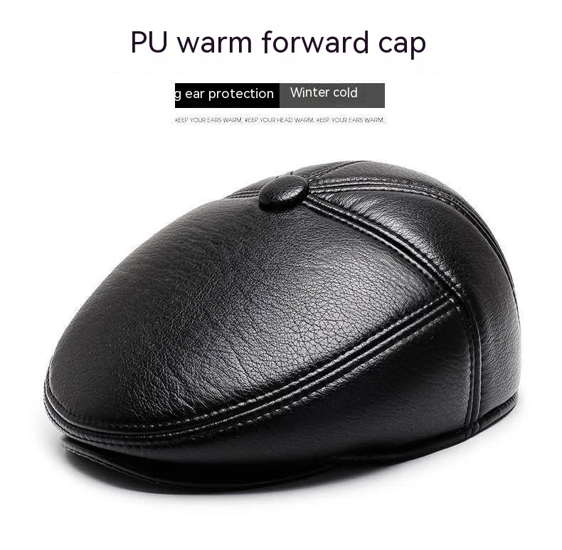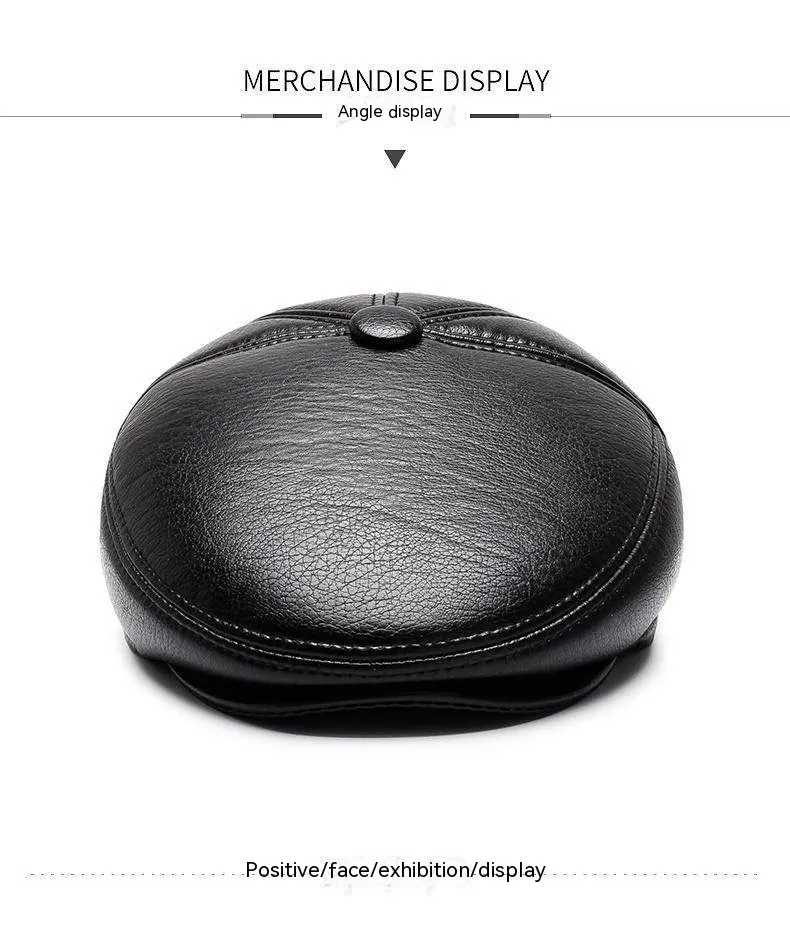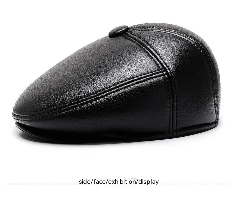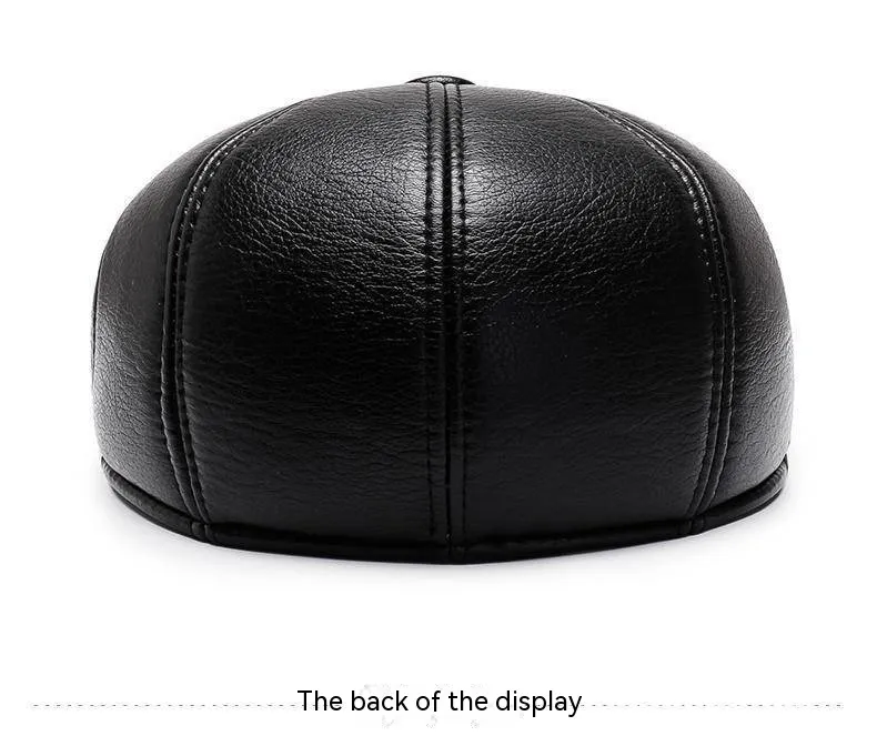 Gorro de cuero para abuelo para hombre, otoño e invierno, forro polar, cálido, informal, de PU, con protección para las orejas y visera.